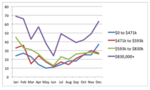 The central Denver real estate market has seen excellent appreciation since 2009 – up 76%. During that time median prices have fluctuated on a month-to-month basis; however, there does appear to be a seasonal pattern. Over the past four years, the most significant step-up in appreciation occurred during the first four calendar months followed by a flatter appreciation rate […]