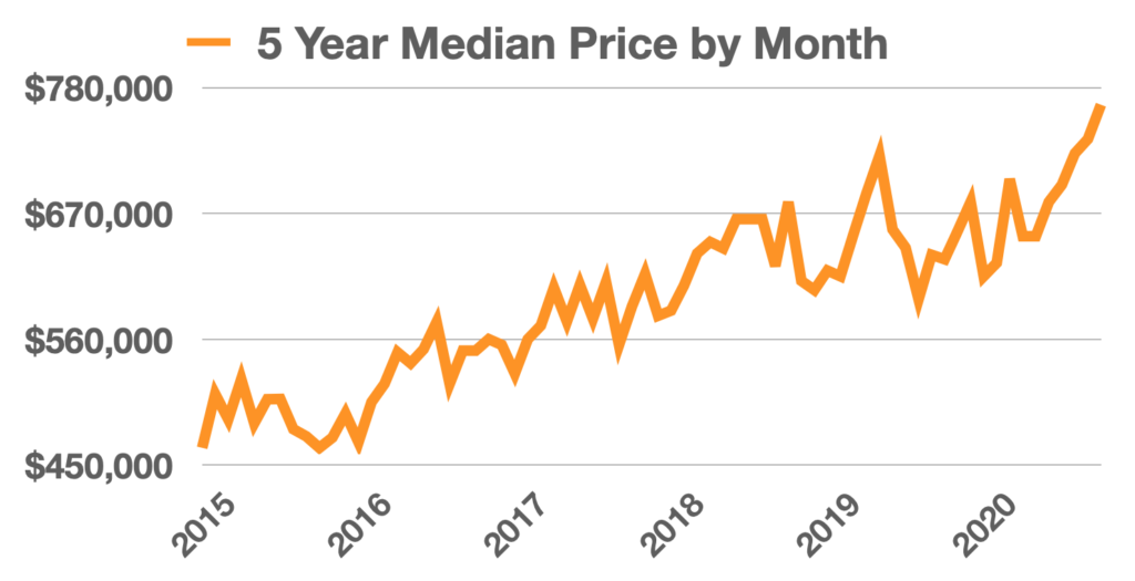 The reason that we mention this detail is to point out that even though Halloween has come and gone and we’ve already had our first snowfall, the market remains very hot right now. In 2019 the October monthly median price was $630,000 and this year we’re hovering at $750,000, that’s 16% appreciation!