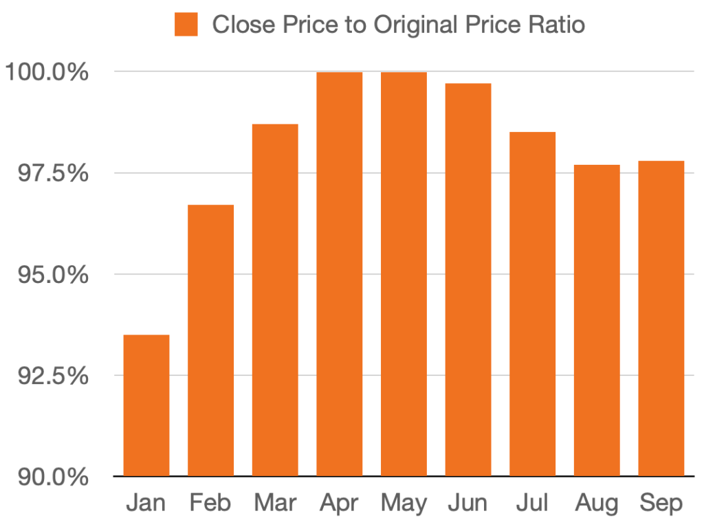Sellers started this year with higher expectations of the value of their homes than buyers were willing to deliver. In January, the close price to the original asking price was 93.5%. This is the most significant divergence in monthly buyer-seller expectations for the past ten years. As you can see, the expectations of buyers and sellers have normalized and are in line with the average list-to-close price ratio for the past five years, except for 2021, when the ratio peaked at 101% for the year.